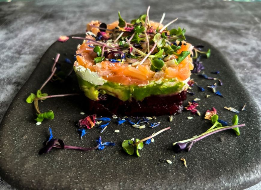 Tatarák z uzeného lososa s avokádem a řepou podle Rudolfa Pohla