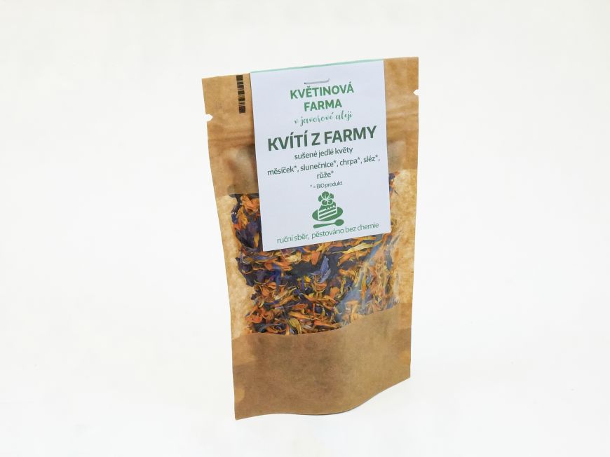 Prožijte léto v barvách s ručně sbíranou směsí jedlých květů ze srdce Vysočiny od Květinové farmy. Tato sytě barevná kompozice měsíčku, slunečnice, chrpy a slézu je nejen pastvou pro oči, ale i jemnou hrou chutí. Květiny pocházejí z ekologického pěst...