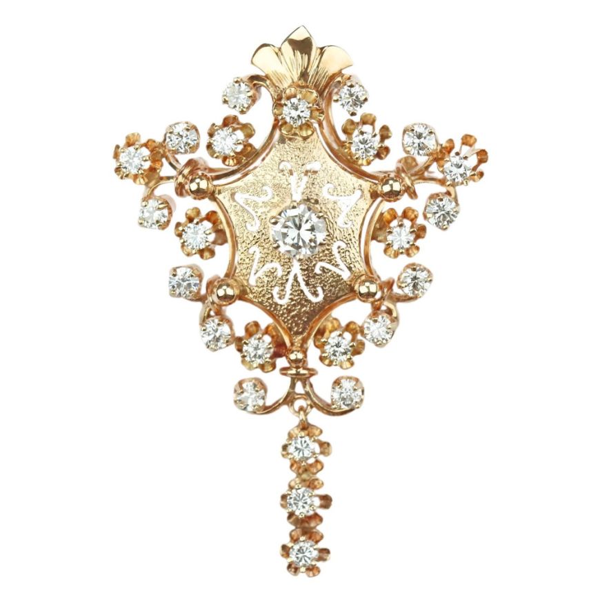 Zlatý přívěs/brož s brilianty
