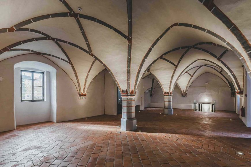 Návštěvník kráčí mezi renesančními trámy, vnímá jejich krásu a sílu, zatímco současný architektonický zásah působí pokorně, lehce a s respektem k historii. Tento kontrast tak vytváří jedinečný dialog starého a nového.