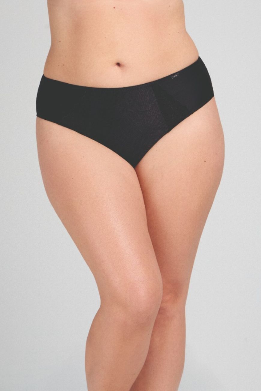 K podprsence Adel perfektně ladí klasické černé kalhotky Triola. Nadčasový střih v kombinaci s jemným žakárem a výšivkovými vsadkami podtrhuje ženské křivky a zaručuje pohodlí po celý den. Zadní díl z hladkého úpletu a bavlněný klínek přispívají k dokonalému pocitu při nošení.