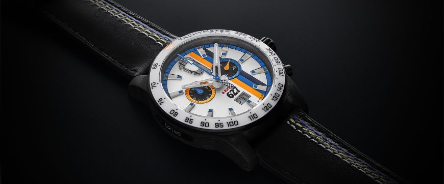 Číselník hodinek odkazuje na ikonické barvy závodního vozu. Bílá, žlutá a modrá jsou doplněné původním logem a číslem 627. Design vznikal více než tři měsíce ve spolupráci s rally jezdcem Josefem Kakrdou a členy původní posádky, jejichž podpisy zdobí dárkové balení.