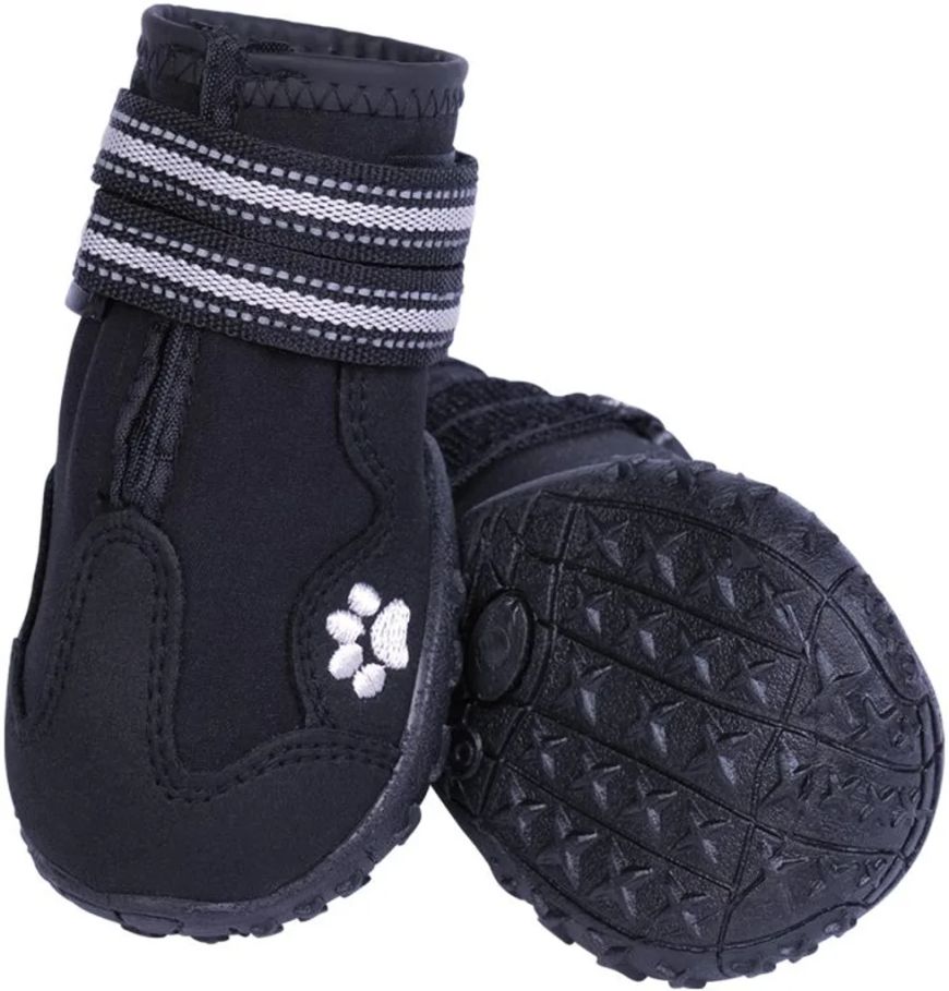 Ochranné botičky pro psy Nobby RUNNERS poskytují pohodlí a ochranu. Prodyšný elastan a pevná protiskluzová podrážka chrání tlapky před poraněním, chladem či kamením, a zároveň zajišťují stabilitu na kluzkých plochách. Zapínají se na suché zipy s reflexními proužky a jsou vhodné i na zimu, kdy chrání tlapky před solí. Na www.krmiva-pucalka.cz jsou k dostání za 349 Kč.
