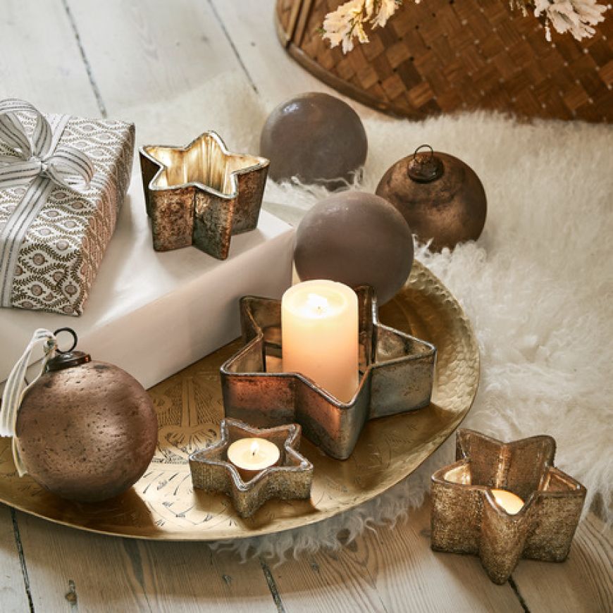 - 4dílná sada svícnů ve tvaru hvězdy, ručně foukané sklo, 698 Kč