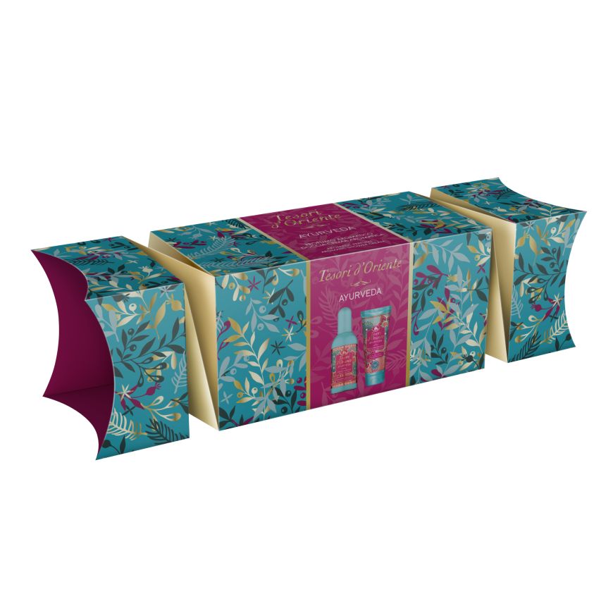Nejoblíbenější řada Tesori d’Oriente Ayurveda čerpá z bohatství přírody – obsahuje bergamot, ylang-ylang, kosatec i růžový pepř. Její éterická vůně vás pohltí, zklidní a pomůže nalézt vnitřní rovnováhu. Dřevité a jantarové tóny s akcenty pomeranče a citronu doplňuje pačuli a cedrové dřevo. Díky tělovým přípravkům, avivážím, pokojovým sprejům i aroma difuzérům si můžete dopřát intenzivní pocit harmonie. Vánoční balení obsahuje parfémovou vodu a sprchový gel.
