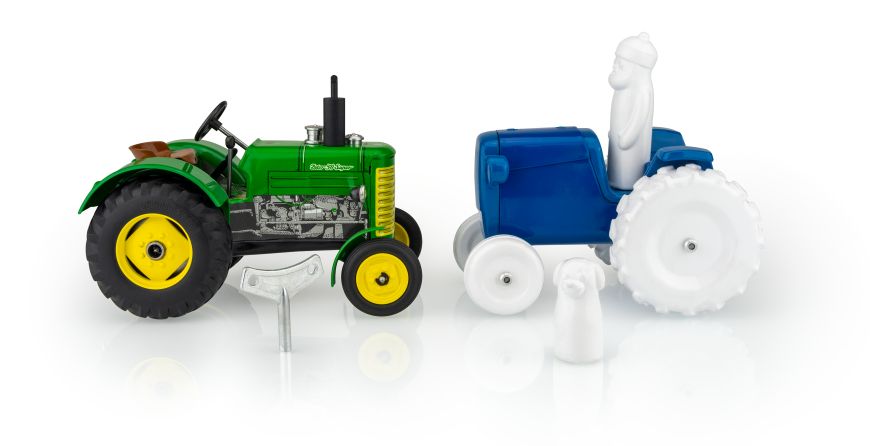 Symbolem značky KOVAP je bezpochyby legendární plechový traktůrek na klíček. Nejde jen o hračku – díky funkční převodovce se zpátečkou a realistickému ovládání představuje malý technický zázrak, který děti nejen baví, ale i učí chápat mechaniku. Pro menší děti je k dispozici i jednodušší varianta bez strojku, kterou lze snadno ovládat volantem. V obou případech jde o nadčasový dárek, který se jen tak neokouká.