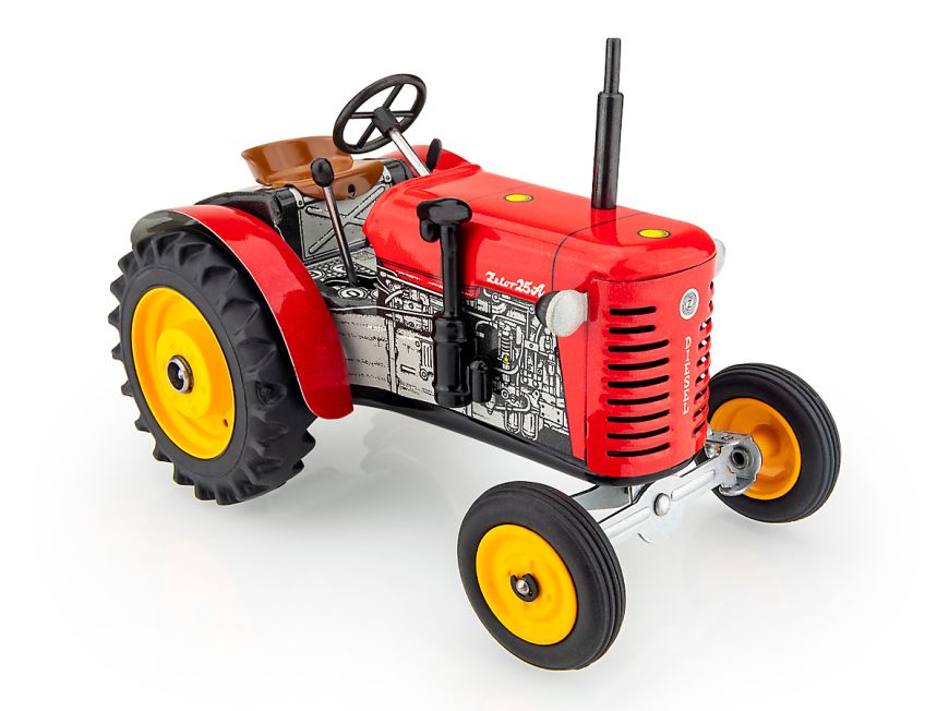 Vedle traktorů si srdce dětí získala i plechová beruška – veselá hračka, která má překvapivou schopnost: nikdy nespadne ze stolu. Při své jízdě vždy včas zatočí, a tak je ideální volbou pro menší děti, které dokáže zabavit na dlouhé hodiny.