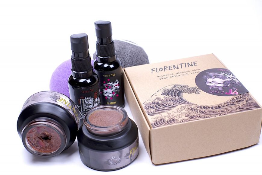 Florentine myslí i na teenage dcery. Set PRO DCERU je perfektní kombinace produktů pro mladou problematickou pleť. Maska MIRAFLORES vyživí a zklidní, je non-toxic a vyrobená z prášků květin, zatímco sérum I’M DRAGON má výborné výsledky na akné. Na Instagramu značky najdete video s reálnými výsledky po několik týdnech používání.
