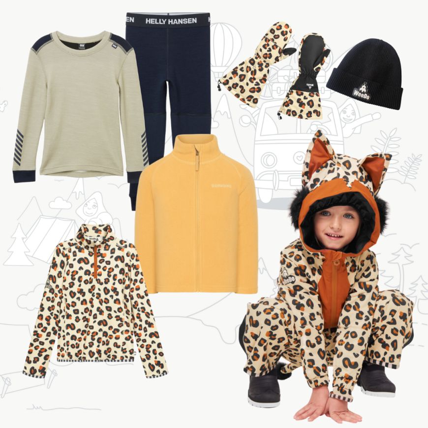 Zimní palčáky WeeDo s membránou a dlouhými manžetami, 1249 Kč; dětské termotričko WeeDo Cheetahdo Leopard, 1299 Kč; termoprádlo Helly Hansen s přirozeným teplem merino vlny, 1689 Kč; zimní čepice Weedo Beanie black, 499 Kč; fleecová mikina Didriksons, 789 Kč.