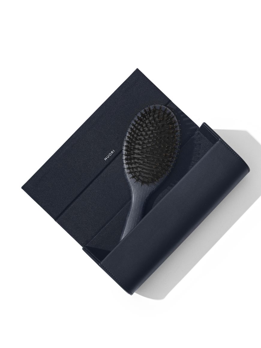 Ergonomická rukojeť z jasanového dřeva zajišťuje pohodlný úchop a maximální kontrolu při česání. Kartáč je vhodný pro střední až husté, včetně velmi dlouhých vlasů, a lze jej používat na suché i mokré vlasy. Součástí balení je elegantní pouzdro z veganské kůže a ochranný bavlněný sáček, díky čemuž je kartáč také skvělým dárkem.