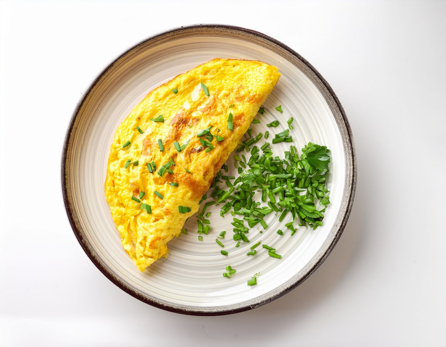 - Hotovou omeletu naservírujeme na talíř, necháme lehce vychladnout, dle preferencí přidáme čerstvé bylinky a můžeme podávat. Dobrou chuť!