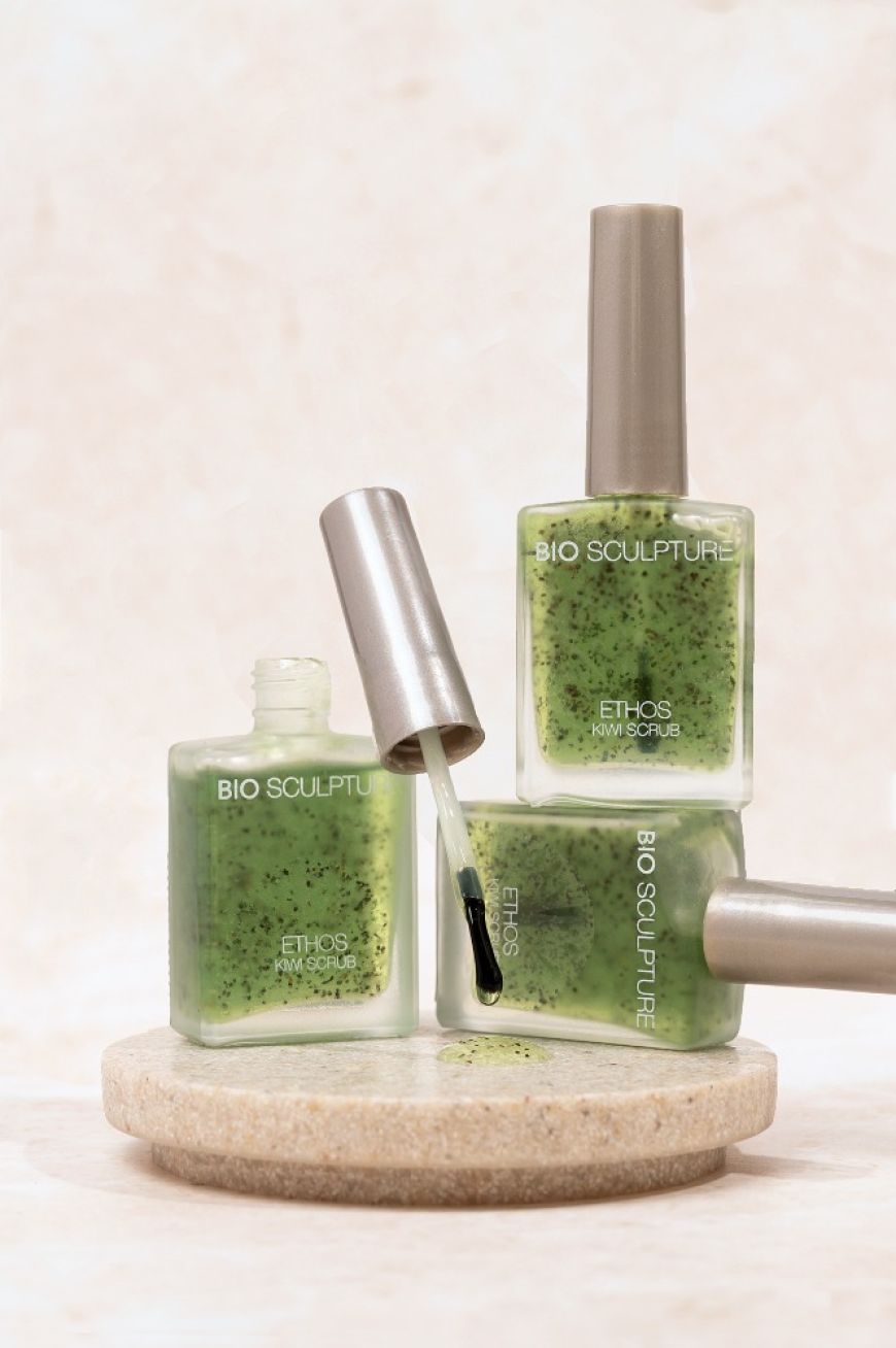 BIO SCULPTURE nabízí několik cílených produktů pro dehydratované a oslabené nehty. Cuticle Cream s mandlovým, olivovým a avokádovým olejem intenzivně hydratuje kůžičku a pomáhá předcházet záděrkám. Vitamin Dose, sérum s vitaminy skupiny B, ženšenem, vilínem a okurkou, podporuje hydrataci, růst a celkovou vitalitu nehtů. Kiwi Scrub s ovocnými extrakty jemně odstraňuje odumřelou kůžičku a zanechává okolí nehtu hladké a vyživené. Executive Base posiluje nehtovou ploténku díky pryskyřici z mastichy, zatímco Volcanic Base se sopečnými minerály a pistáciovým olejem dodává pevnost a pružnost měkkým a lámavým nehtům.
