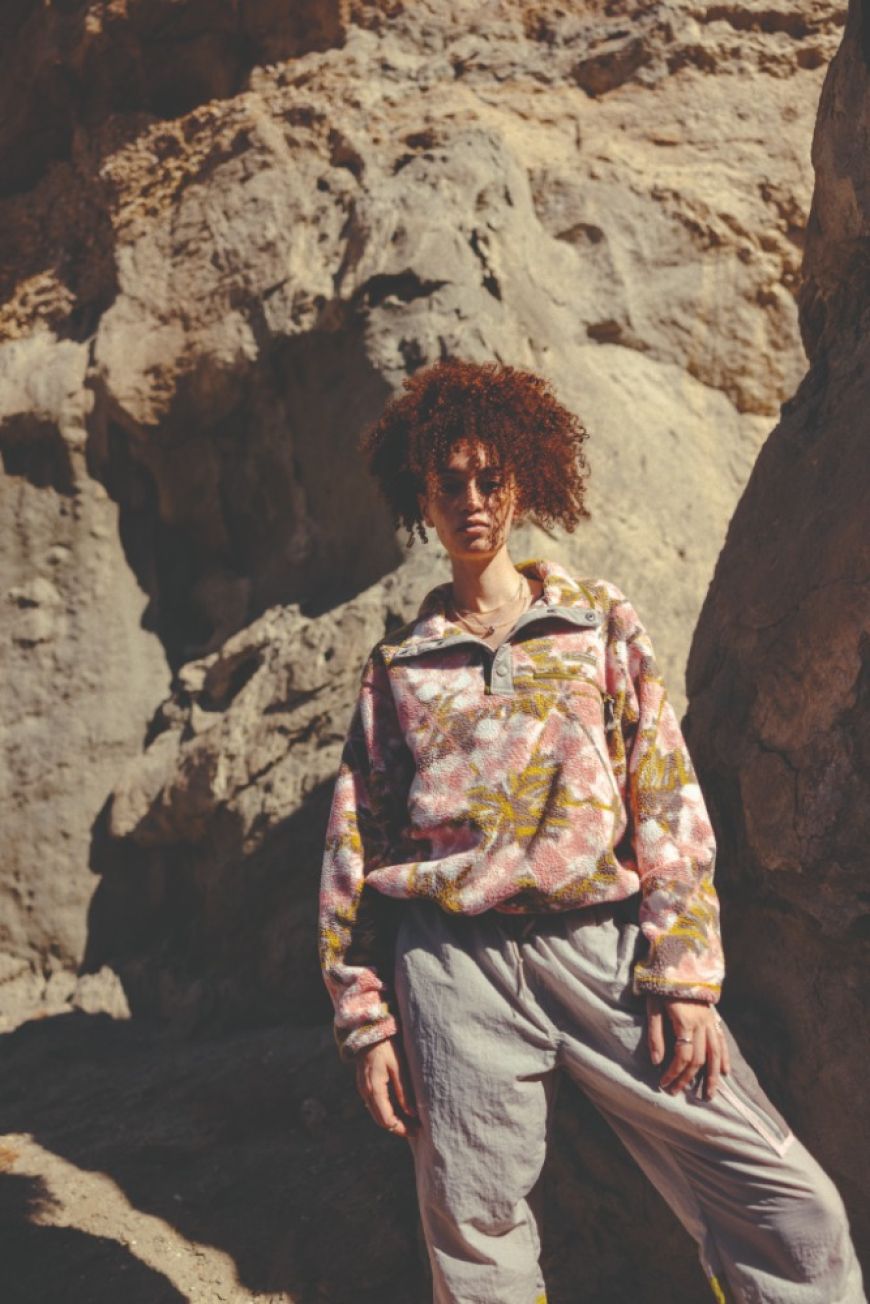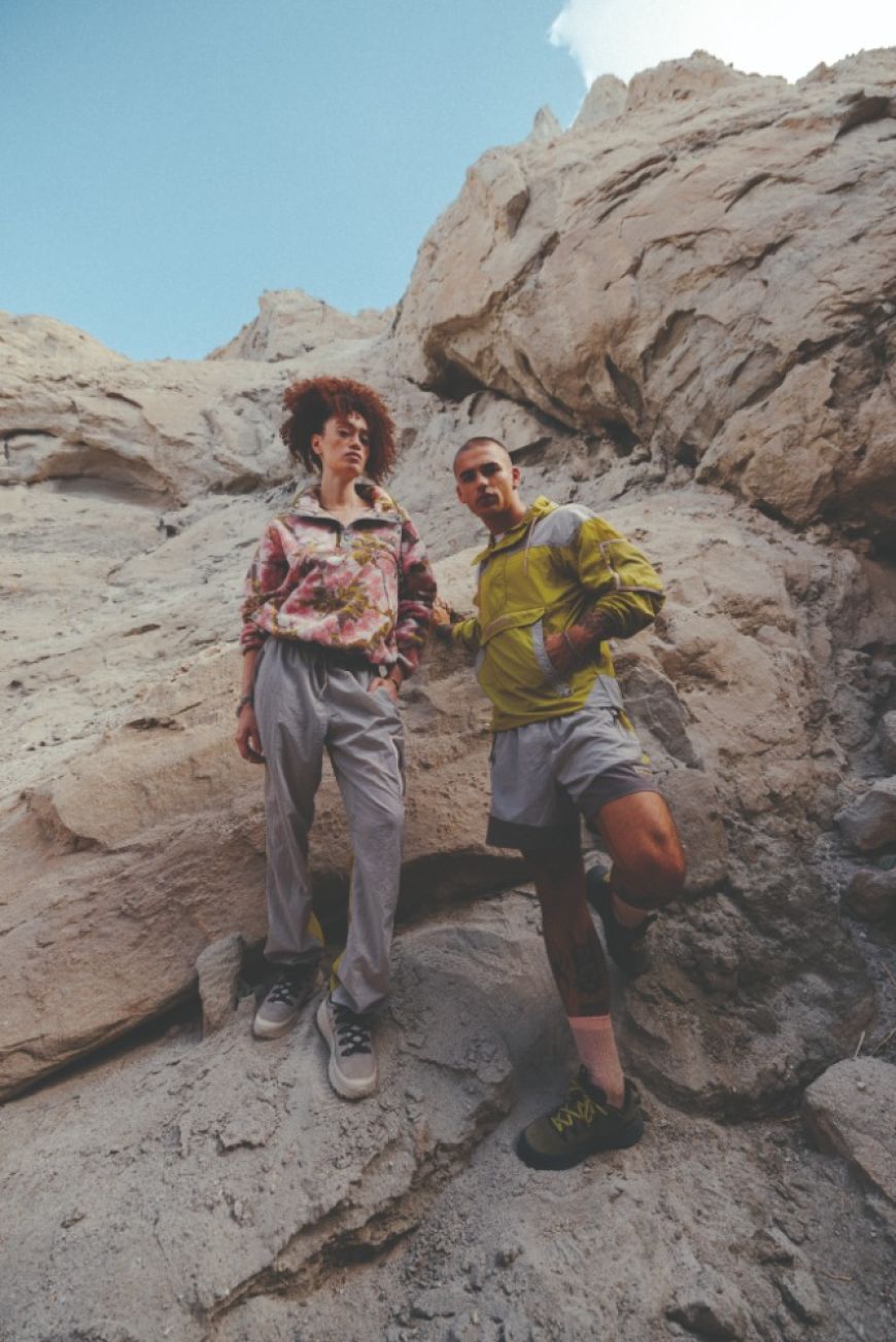 Tato atmosféra se do kolekce promítá prostřednictvím sezónních potisků a zemitých barev vycházejících z neutrálních tónů trailového prostředí. Paletu doplňují odstíny tlumené zelené inspirované místní vegetací a jemné růžové připomínající divoké květy, které na Mosier Plateau každé jaro rozkvétají.